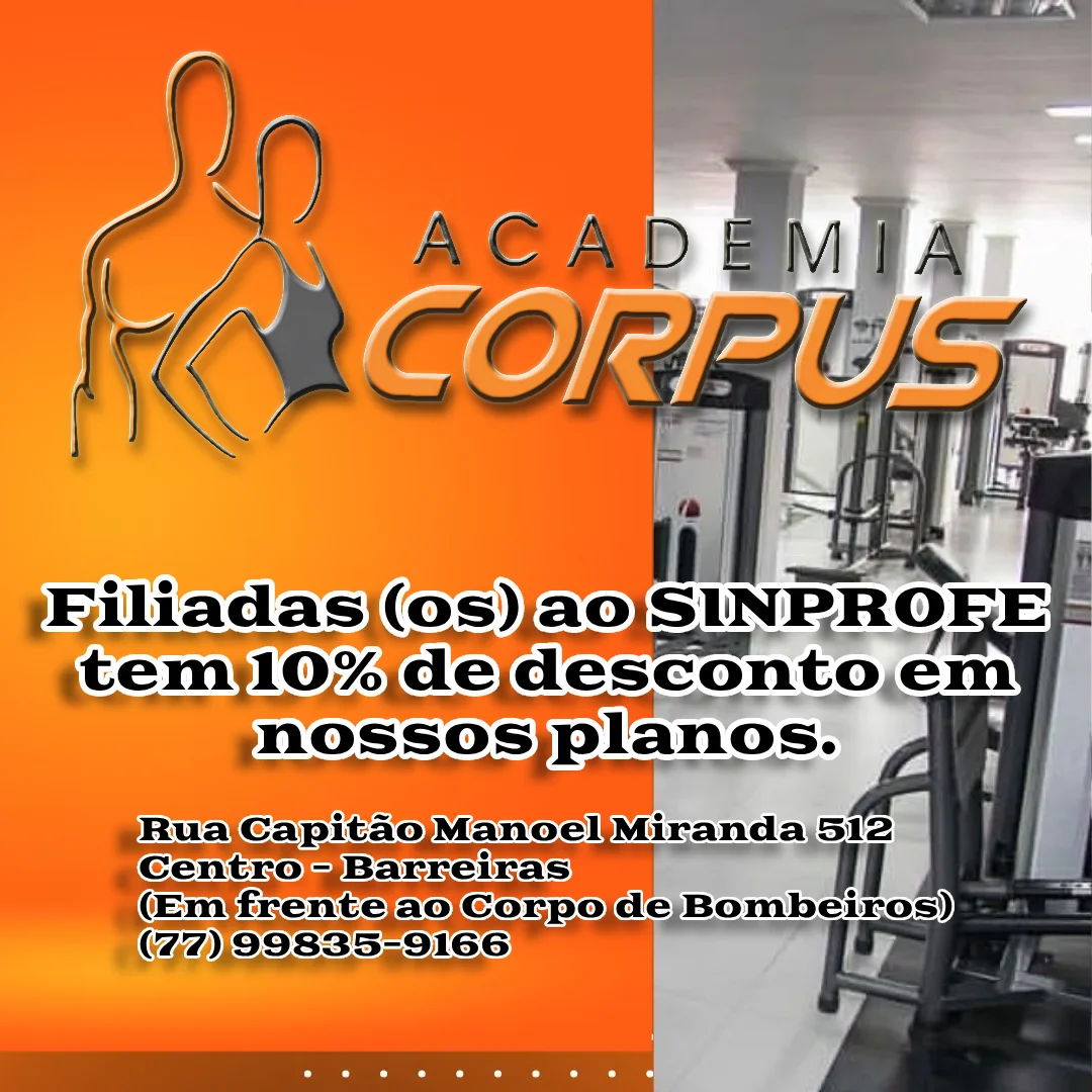A Academia Corpus, parceira do SINPROFE, oferecendo aos filiados e filiadas a oportunidade de cuidar da saúde e do bem-estar com vantagens exclusivas.